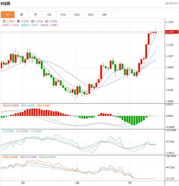 周二盘中,欧元/美元货币对1.1238/1.1238,下跌至-0.0001, 增幅-0.01%。欧元区国债收益率集体走低。