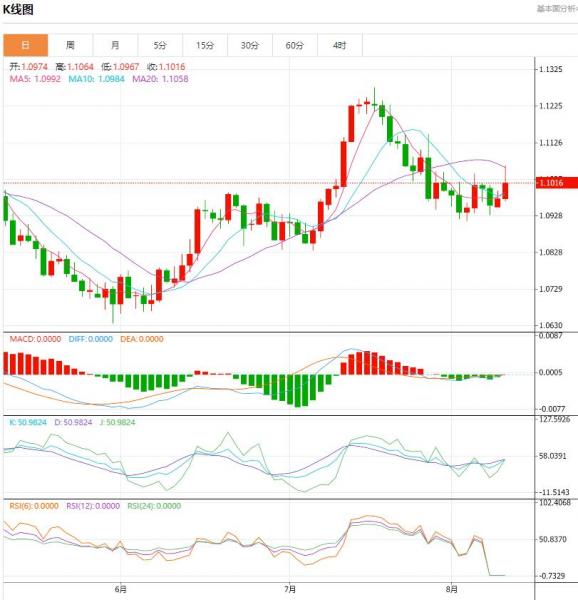 周四欧元走高。欧洲时段,欧元/美元报1.1020,上涨0.43%。数据日历上,今天欧元区没有经济数据发布。美国公布7月通胀报告。