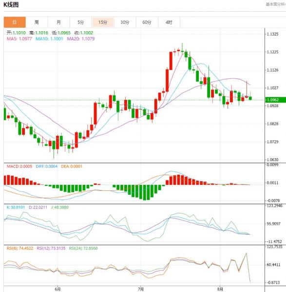 行情分析:汇价高见1.1005,低见1.0955。上一交易日1.0980。基本面上看,欧元昨日冲高后回落,日内涨幅收窄。时段内美国公布的CPI数据表现疲软令投资者对美联储9月份暂停加息的预期升温是支撑欧元攀升的主要原因。不过,欧洲央行9月份也将暂停加息的预期和美联储官员发表的加息言论限制了汇价的上升空间。技术上,日线图上,欧元/美元隔夜拉出长上影线小阳柱,汇价继续撑持在1.10附近,技术指标MACD绿色动能柱略开始有所收敛,显示欧元继续下行动能有所减弱。但整体上,汇价仍处于布林带中轨之下,其下行态势尚未由得到扭转的迹象。上方位于突破中轨线水平1.1050的压制后,或才能看到跌势扭转的可能。否则还是要谨防其延续下滑的风险。