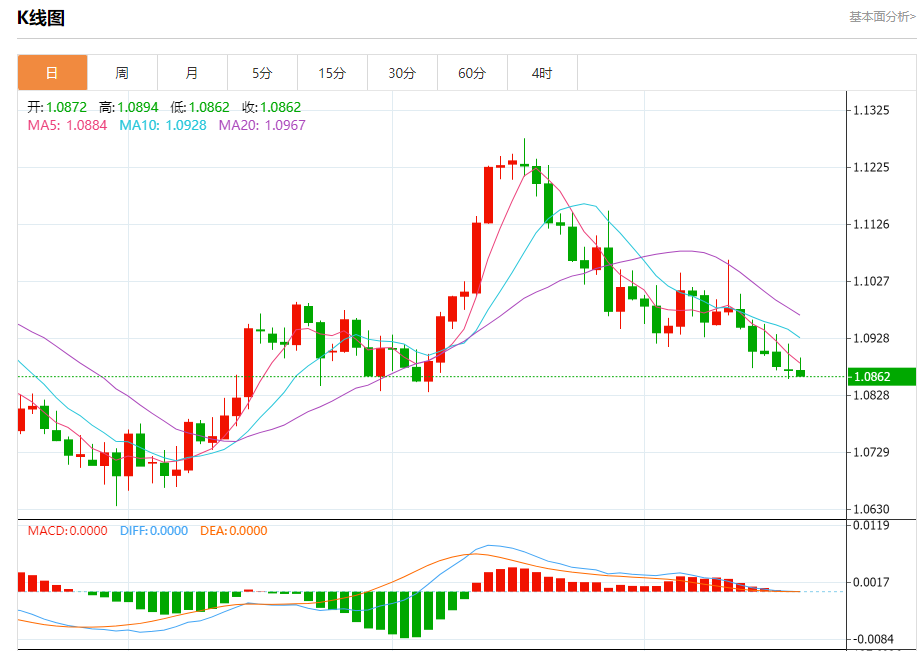 今日周五,截止目前欧元兑美元报1.0863,下跌0.09%。