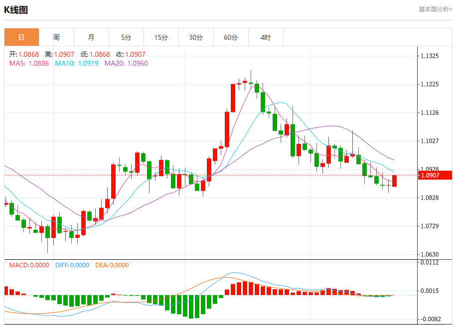 今日周一,截止目前欧元兑美元报1.0908,上涨0.32%。