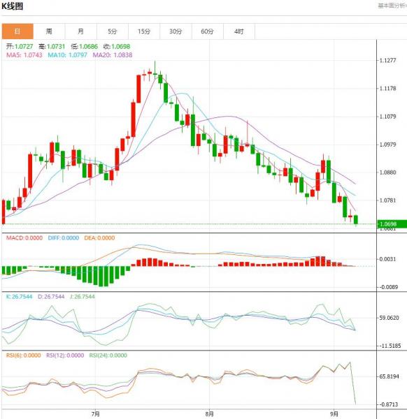 交易策略:可以在1.0750---1.0700的区间上限卖出,有效破位25个点止损,目标在区间的下限。