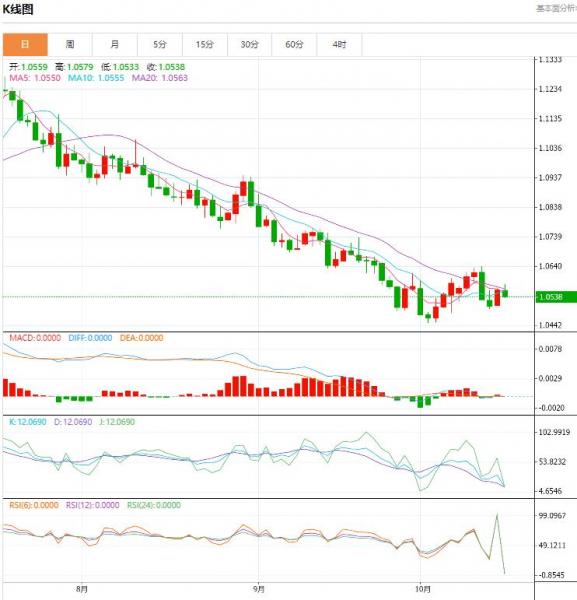 交易策略:可以在1.0600---1.0520的区间下限买入,有效破位40个点止损,目标在区间的上限。