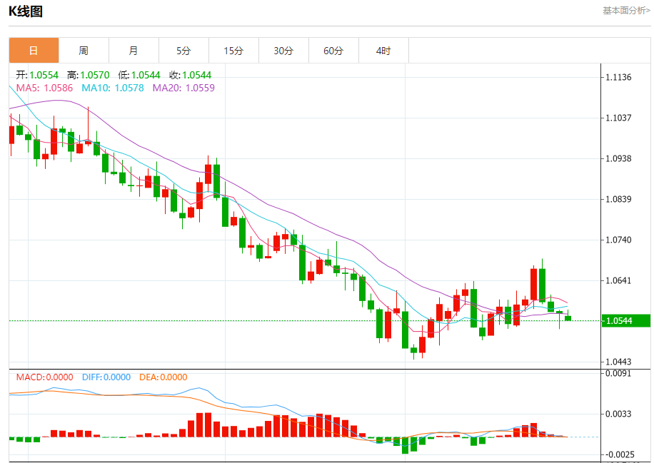今日周五,截止目前欧元兑美元报1.0546,下跌0.16%。