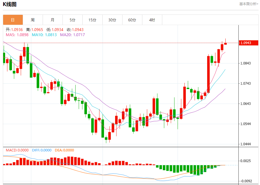 今日周二,截止目前欧元兑美元报1.0944,上涨0.06%。