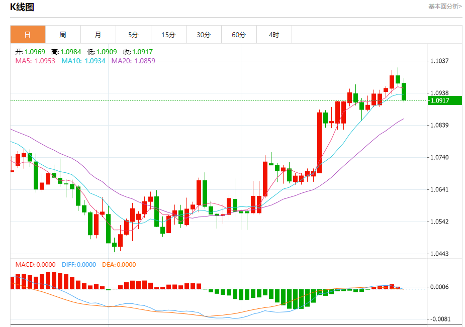 周四欧市盘中,欧元兑美元交投于1.0920,跌幅为0.46%。