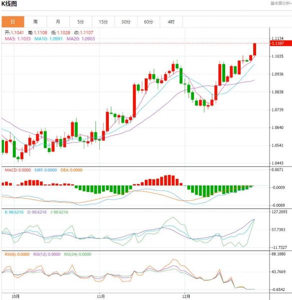 交易策略:可以在1.1070---1.1020的区间下限买入,有效破位30个点止损,目标在区间的上限。