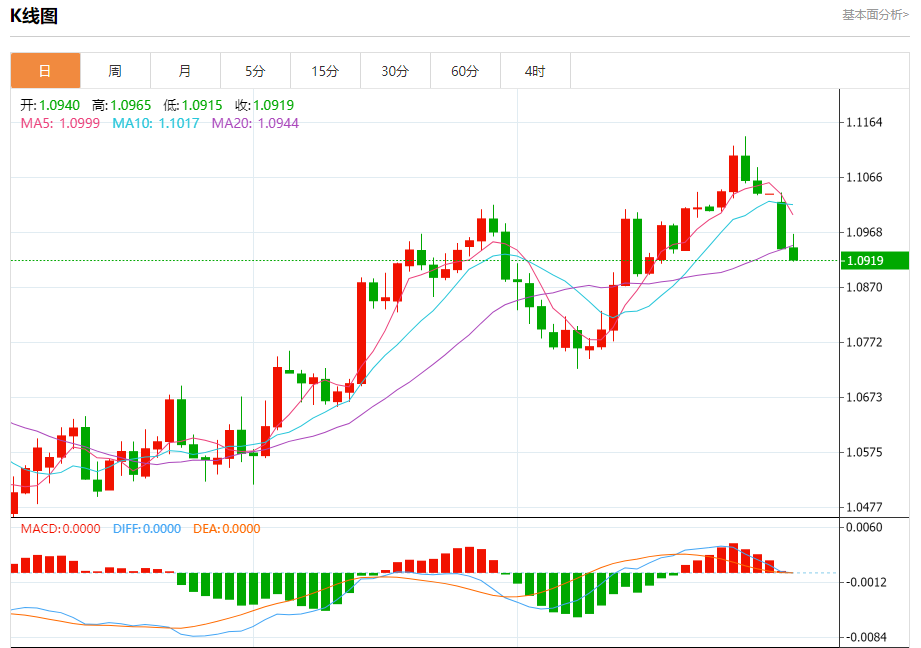 周三欧市盘中,欧元兑美元交投于1.0921,跌幅为0.17%。