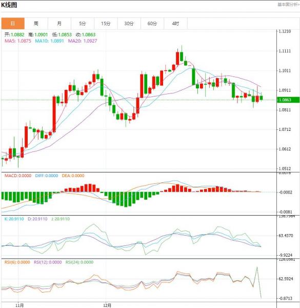欧元周四走势有限,欧洲时段,欧元/美元交投于1.0895,涨幅0.10%。