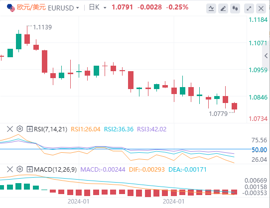 4小时图上的相对强弱指数(RSI)指标维持在40附近,欧元/美元继续在下降趋势线下方交投。1.0800(最新升势的50%斐波那契回撤位)是该货币对的中枢水平。一旦该水平被确认为阻力位,技术卖家可能会采取行动,并打开跌向1.0740(静态水平)和1.0700(61.8%斐波那契回撤位)的大门。