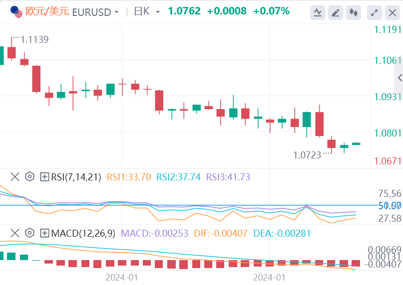 技术面上,汇价上行的初步阻力位于1.0770,进一步阻力位于1.0785,关键阻力位于1.0809;汇价下行的初步支撑位于1.0731,进一步支撑位于1.0707,更关键支撑位于1.0692。