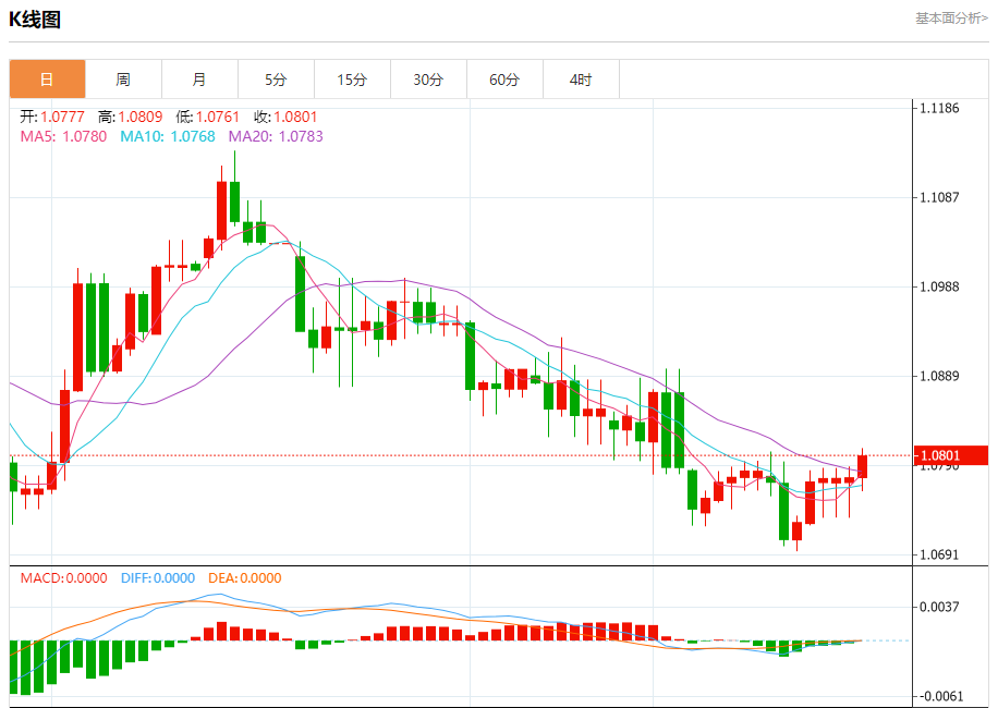 今日周二,截止目前欧元兑美元报1.0802,上涨0.23%。