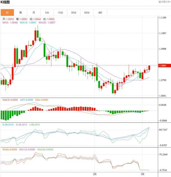 周三盘中,欧元/美元上升至0.0026点位,增幅0.24%。欧元区零售业仍处于下行轨道,对提振今年头几个月整体经济的希望渺茫。Colijn指出,1月份欧元区的零售销售额略有上升,但仍低于11月份的水平,与过去几年的下降轨迹相同。