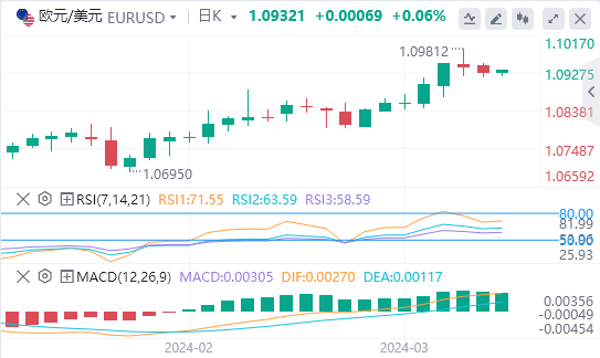若欧元/美元突破3月份高点1.0981(3月8日),可能促使欧元/美元尝试上攻周线高点1.0998(1月11日),然后是1.1000的心理关口,然后是2023年12月高位1.1139(12月28日)。