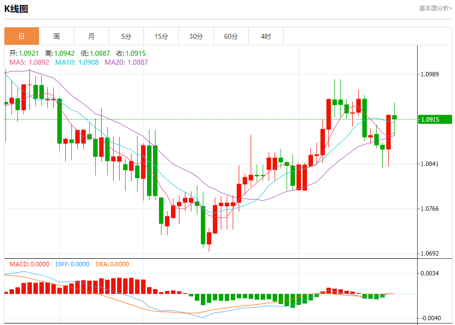 今日周四,截止目前欧元兑美元报1.0911,下跌0.11%。