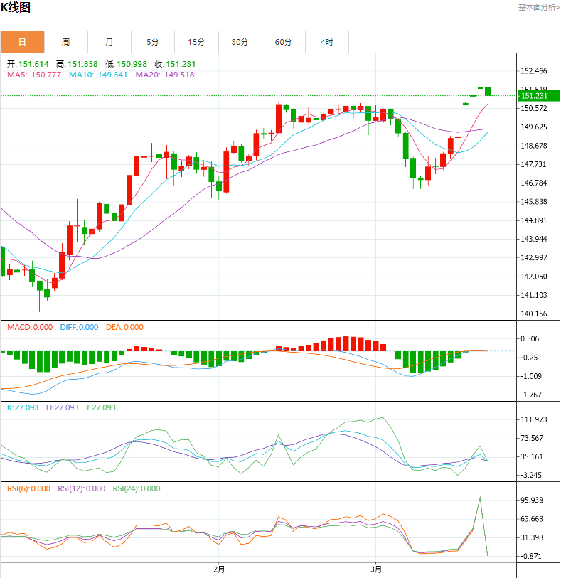行情分析:汇价高见151.858,低见150.998。上一交易日,基本面上看,美元/日元回到了2022年和2023年转跌之前创下的151.92-24双顶附近。这两次触顶时日本决策者都进行了激烈的口头干预。2022年,日本从9月开始干预以阻止日元下跌,一直持续到10月份,日元在跌至151.94点后终于回升。技术面上看,短线小时图上,美元/日元呈一定的超卖调整状况。但日线级别图上,各项技术指标仍处于积极上摆之中,显示美元的多头力量占优。若经短线调整后,汇价仍保持在150.50之上,则美元/日元仍有望攀闯高峰。