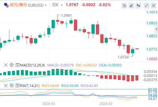 德国统计局Destatis周二发布报告称,德国3月份通胀放缓幅度略高于预期,为近三年来最低水平。3月份德国消费者物价调和指数初值月率上升0.6%,略低于预期0.7%。德国消费者物价调和指数初值年率2.3%,低于期值2.4%。通胀走软表明德国正接近欧洲央行(ECB)设定的2%的目标,提高了市场对欧央行将降息的希望。这因此又打压欧元,给欧元/美元货币对带来逆风。