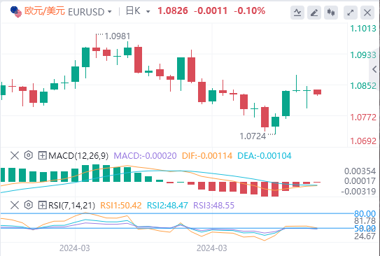 在1.0795找到暂时的日内支撑后,在200SMA附近徘徊。在没有重新测试1.0950水平的情况下,价格走势可能难以维持其近期的看涨走势。