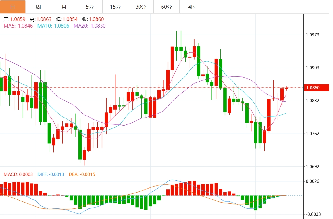 欧元/美元周一小幅上涨,在50日和200日简单移动均线上方盘整,接近斐波那契阻力位1.0865。空头将需要激烈地捍卫这一技术上限;如果做不到这一点,可能会引发反弹,跌至重要的趋势线1.0915,然后是1.0980。