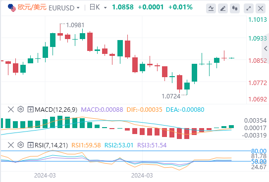 上行方面,预计欧元/美元将在迄今为止的四月高点1.0885(4月9日)面临初步阻力,然后是三月高点1.0981(3月8日)和周线高点1.0998(1月11日),然后是心理关口1.1000之前。若欧元/美元在此基础上进一步上涨可能会测试2023年12月高点1.1139(12月28日)。