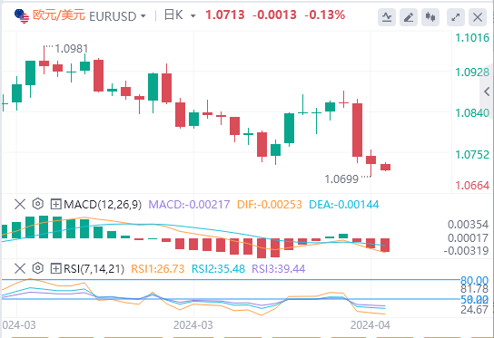 3、欧元区方面,欧洲央行周四连续第五次会议将主要利率维持在4.0%。尽管美联储的下一步行动仍不确定,但美联储也暗示即将降息。伦敦证交所集团(LSEG)的数据显示,市场已定价欧洲央行6月将降息25个基点。越来越多的投资者猜测欧洲央行将在美联储之前降息,这对欧元(EUR)造成了一定的抛售压力,并成为“打压”欧元/美元的关键因素。