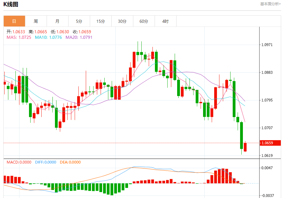 今日周一,截止目前欧元兑美元报1.0660,上涨0.17%。