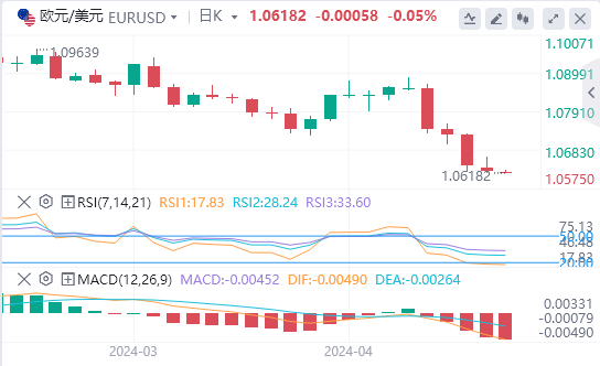 在美元持续走强的情况下,欧元/美元连续第五个交易日承压,跌至1.0620附近水平,并创下2024年新低。