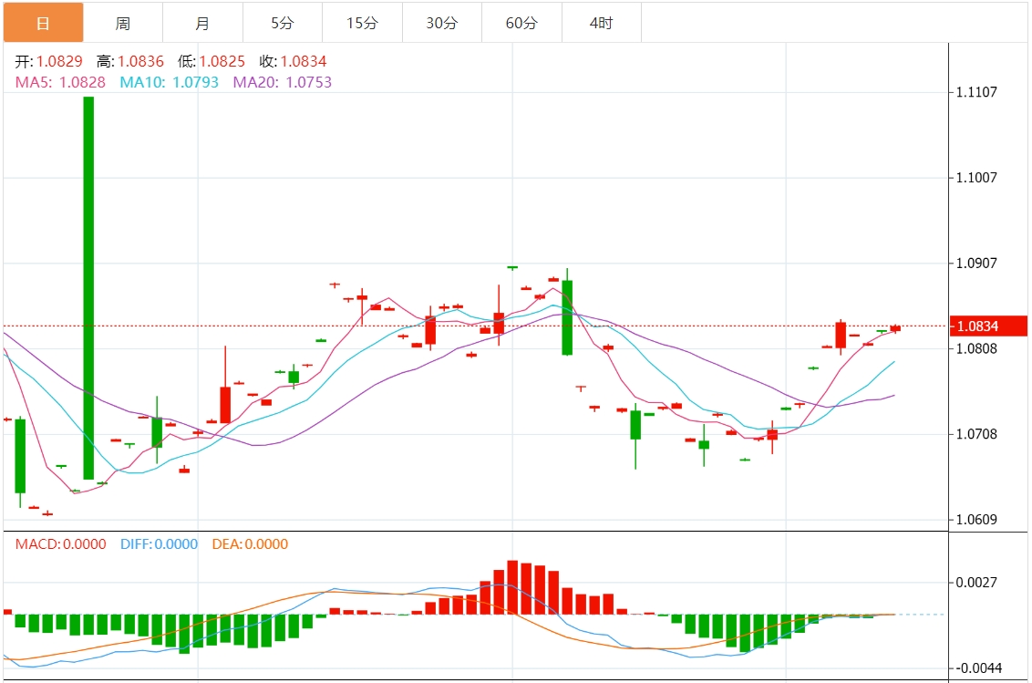 投资者在消化美国国会主席杰罗姆-鲍威尔(Jerome Powell)在国会的第二次证词,美元价格震荡走势促使欧元/美元也在1.0820附近徘徊,全天小幅上涨。