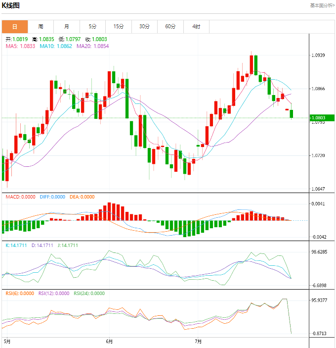 交易策略:可以在1.0860---1.0790的区间上限卖出,有效破位40个点止损,目标在区间的下限。