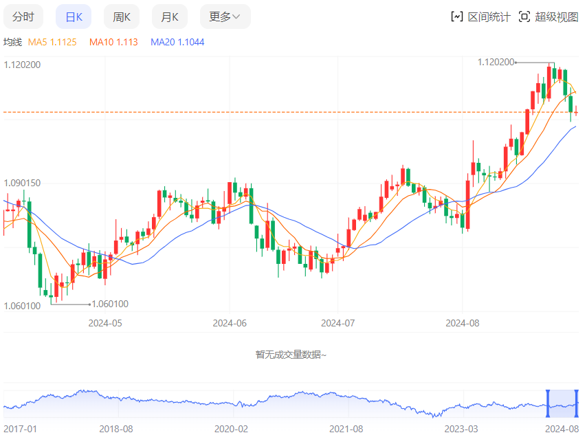 今日周五,截止目前欧元兑美元报1.1079,上涨0.02%。