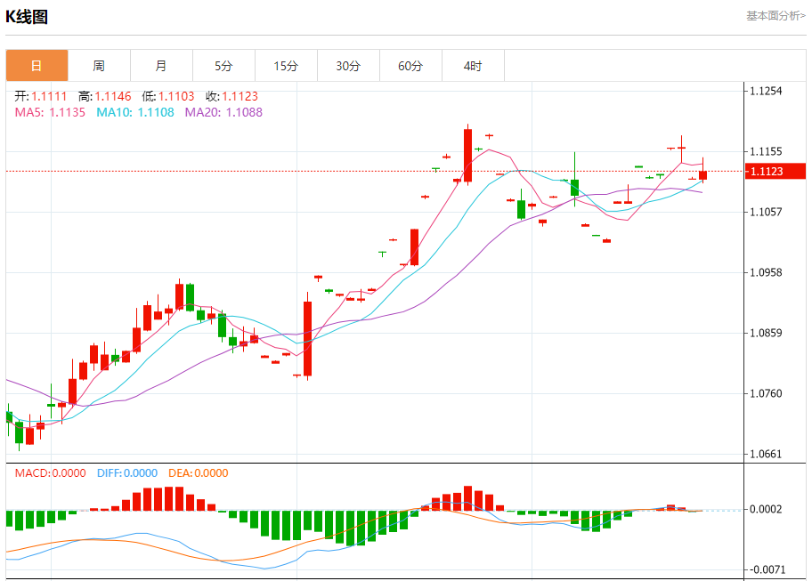 今日周二,截止目前欧元兑美元报1.1125,上涨0.12%。