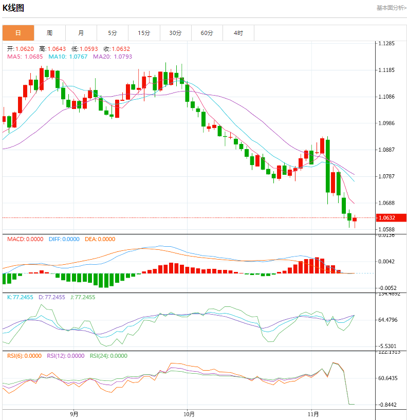 交易策略:可以在1.0655---1.0585的区间下限买入,有效破35个点止损,目标在区间的上限。
