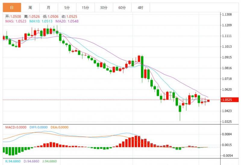欧元兑美元今日汇率最高1.0526,最低1.0506,涨跌0.0016,涨跌幅0.16%。