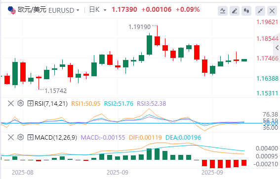 欧元/美元连续四个交易日坚守在1.1700水平上方,但仍在1.1750下方挣扎,抑制了上行势头。相对强弱指数(RSI)在中性50关口附近趋于平缓,表明犹豫不决。