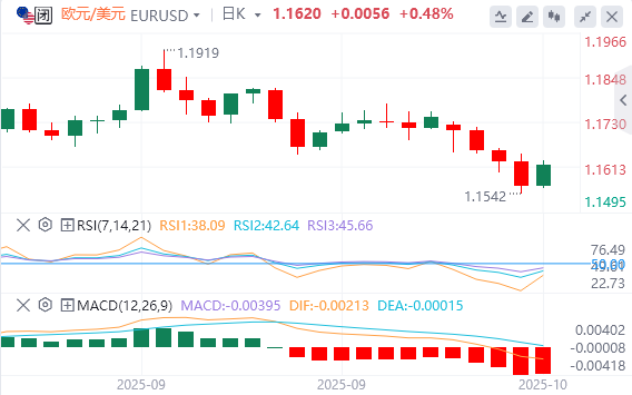 下周关键支撑位在1.1520,跌破后将测试8月低点1.1391及1.1300心理关口。上方阻力位于1.1630-1.1650区间,突破后将挑战1.1750及1.1830。