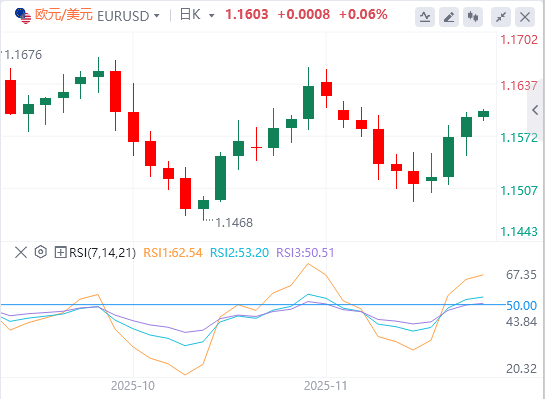 欧元兑美元恢复上涨趋势,清空20日简单移动平均线(SMA)1.1556,但仍未能扩大涨势。如果该货币对突破1.1600,将面临关键阻力,如11月5日低点1.1468和200日均线约1.1426的汇合点。