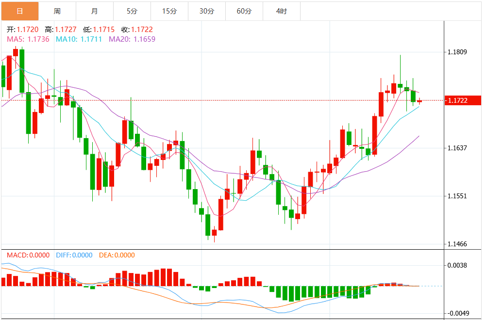 技术上,欧元/美元连续第五天在1.1700-1.1800区间中部整固,价格走势变得平淡,流动性减少,交易者为圣诞假期做准备。
