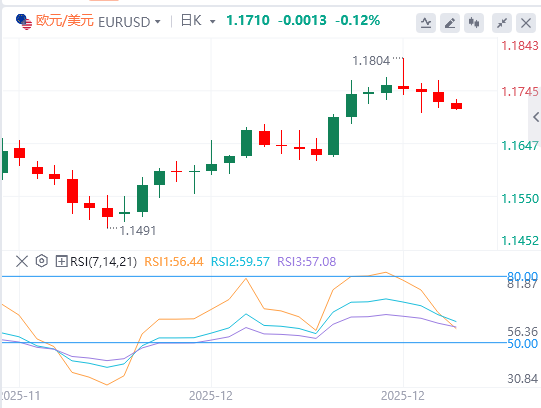 20期简单移动平均线(SMA)在1.1738上方平坦,限制了短期的上行空间。 50期SMA在1.1715上升,而100期和200期SMA分别在1.1670和1.1615,保持了更广泛的支撑基调。 然而,相对强弱指数(14)位于46,低于中线,表明动能疲软。