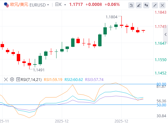 下行方面,直接支撑位于九日均线1.1713,与上升通道边界1.1710附近对齐。若跌破通道,短期价格动能将减弱,欧元兑美元对下行压力,试探50日均线1.1648,随后是12月1日记录的三周低点1.1589。