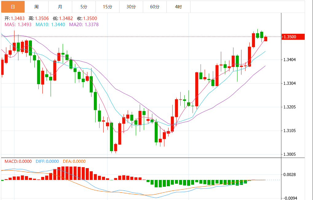 欧元/美元从上周的高点1.1800回落,技术指标显示出日益增长的看跌动能。 4小时相对强弱指数(RSI)已回落至50以下,移动平均趋同/背离(MACD)指标在穿过信号线后显示红色柱状图。