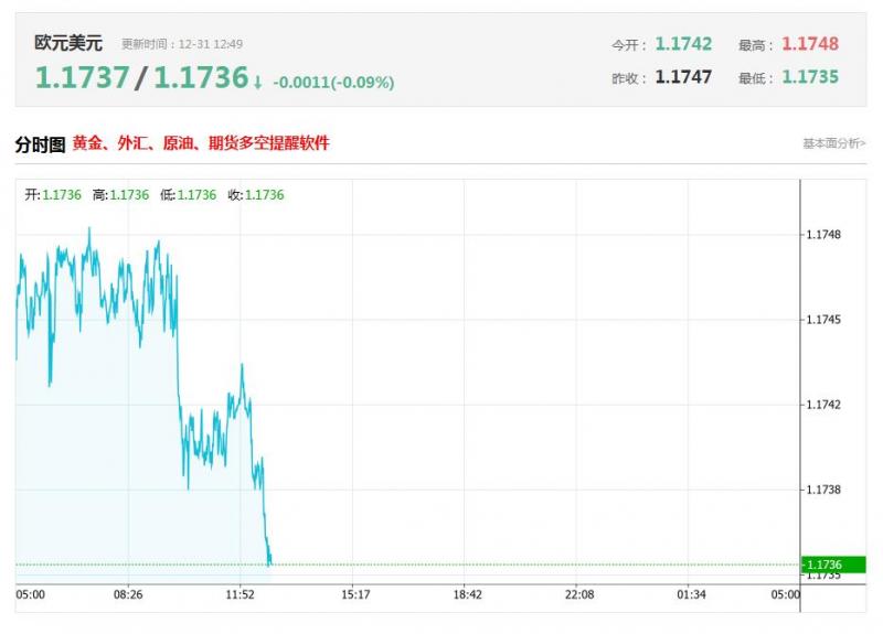 欧元兑美元今日汇率最高1.1737 ,最低1.1736 ,涨跌-0.0011 ,涨跌幅-0.09% 。