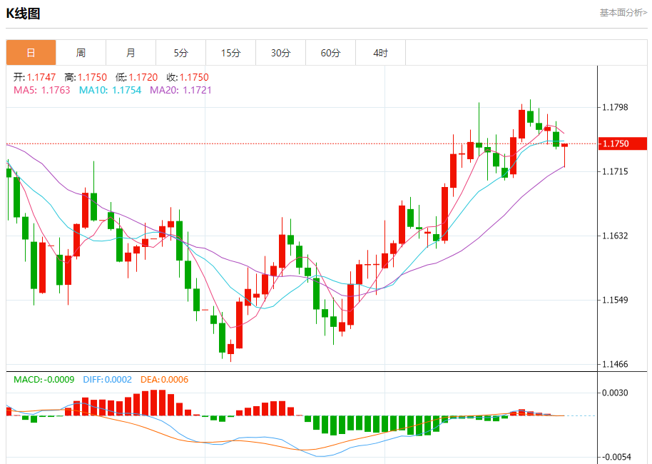 今日周三,截止目前欧元兑美元报1.1750,上涨0.02%。