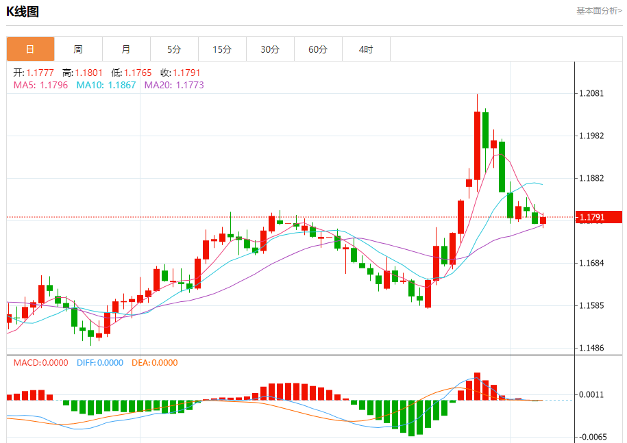 今日周五,截止目前欧元兑美元报1.1791,上涨0.11%。