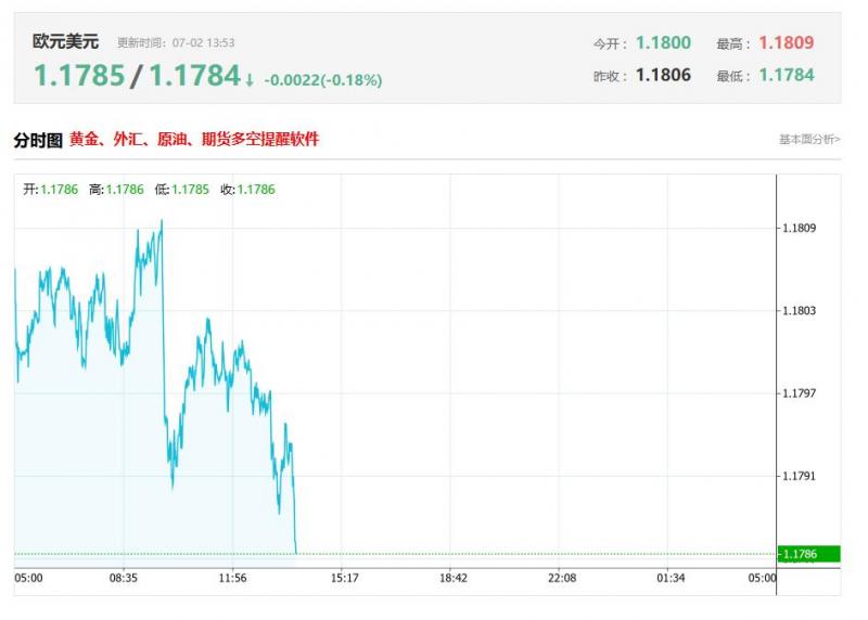 7月3日,周四亚市早盘,欧元/美元徘徊于1.1799附近。 周三交易低于1.1800。差于预期的美国就业报告增加了对美联储(Fd)可能降息的猜测,因为全球最大经济体对经济衰退的担忧日益加剧。 周三,自动数据处理(AD)宣布,6月份私人就业人数下降,这是两年来的首次下降。尽管美元最初走软,但收复了一些失地,将欧元/美元