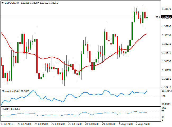 技术面上,4小时图来显示看涨基调,英镑/美元位于看涨的20SMA上方,在技术指标中线上方走高,即便上行动能受限。上行方向,英镑/美元料反弹至1.3480,即7月15日最高位,下行料重测1.3000心理关口。