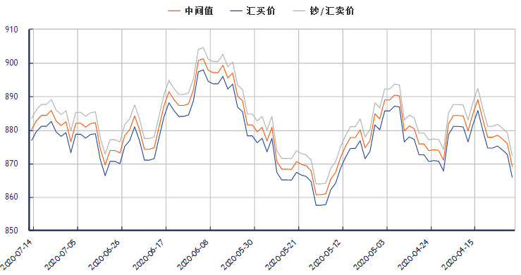 今日英镑对人民币汇率走势图(2020年7月14日)