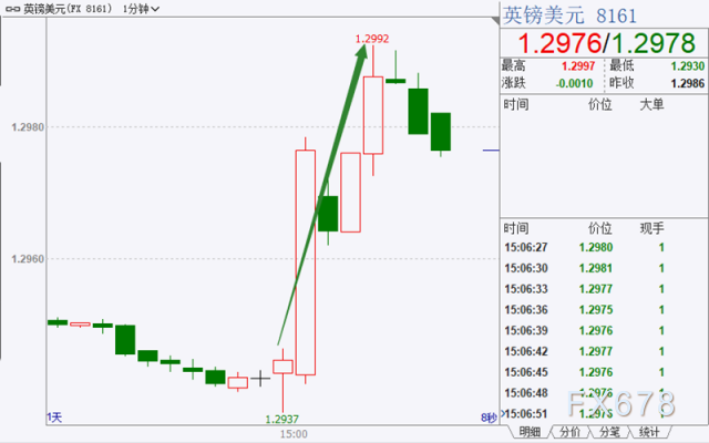 北京时间周四(11月5日)15点,英国央行如期维持0.1%央行基准利率不变,但超预期扩大购债规模1300亿英镑。截至发稿,英镑兑美元跳升48点至1.2992。