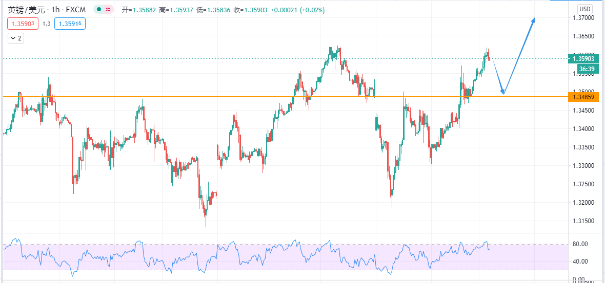 盘面上,今天到达1.362之后有所滞涨,鉴于今天提前休市,就不建议大家在激进开仓了,下周初关注下方1.348--1.350的支撑情况,择机做多,目标继续看向1.40