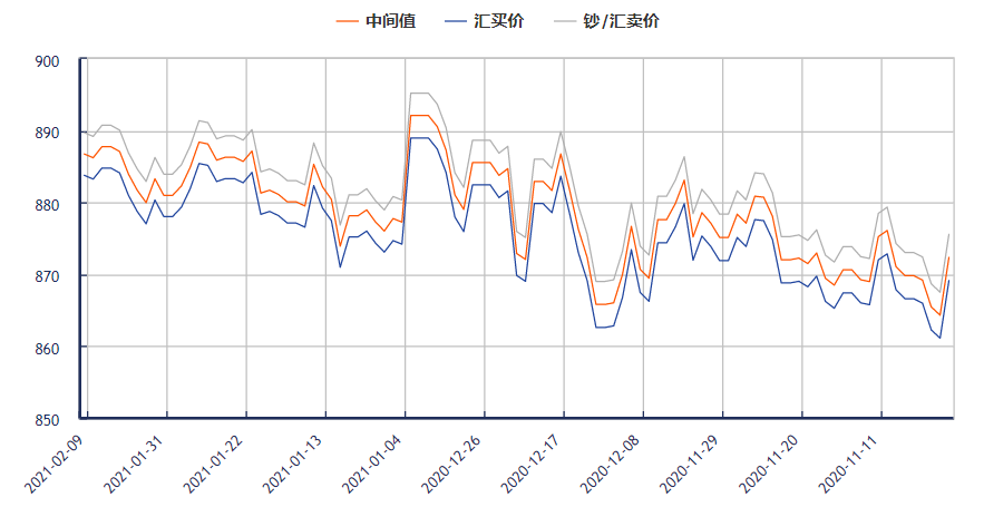 外汇网提供今日英镑兑换人民币汇率最新中间价(2021年2月9日):