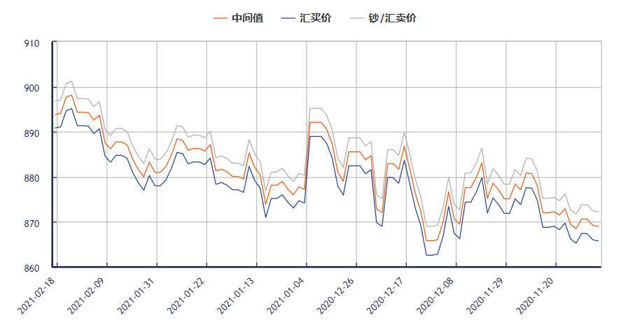 外汇网提供今日英镑兑换人民币汇率最新中间价(2021年2月18日):